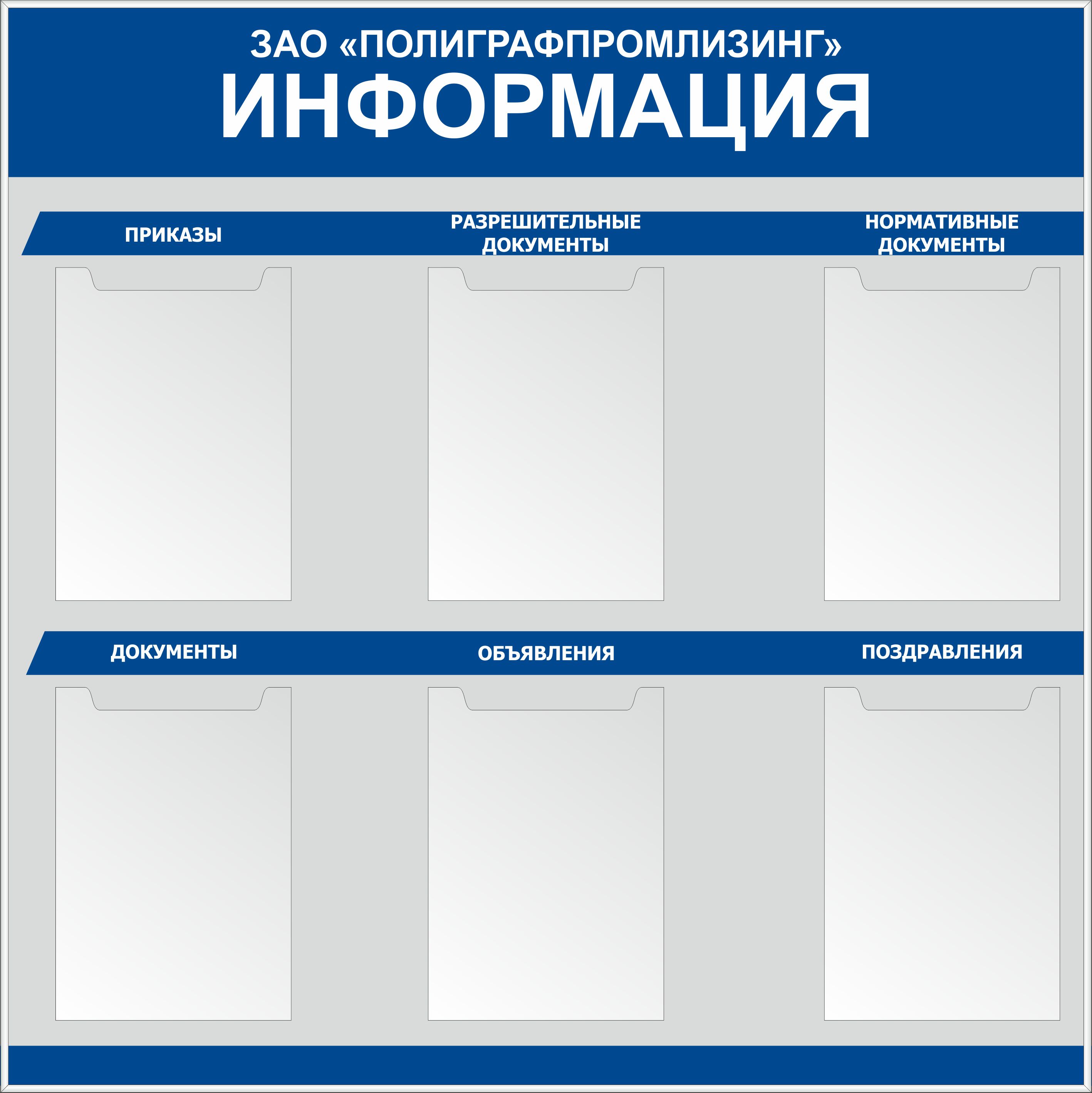Стенд Информация карманы А4 -2шт (плоские), перекидное устройство А4 на 10 рамок, Логотип (600х900; Пластик ПВХ 4 мм; Пластиковый синий)